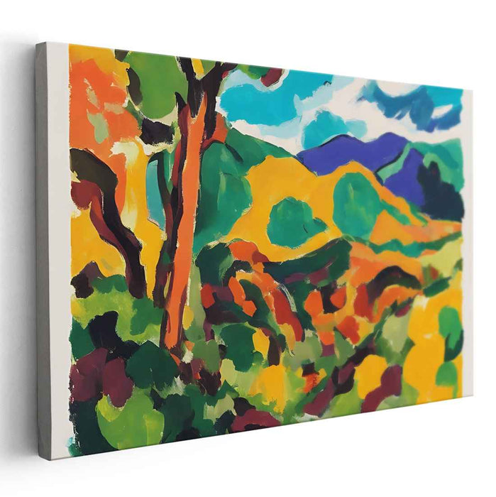 Step into the mesmerizing world of 'Wild Brushstrokes Dance in Color: Fauvist-Inspired Vibrant Landscape Canvas Art', a masterpiece that exudes a symphony of colors and forms, drawing inspiration from the revolutionary Fauvism art movement. This canvas art transports you to a vivid and dynamic landscape, where bold hues and simplified shapes reign supreme.
