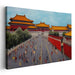 Introducing 'Worldly Wonders,' a captivating cultural canvas art print that transports viewers to the bustling heart of the iconic Forbidden City in Beijing, China. This vibrant artwork teems with life, depicting a myriad of visitors in a dynamic and lively setting that captures the essence of this historical landmark.
