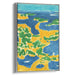 The composition of this masterpiece is dominated by sweeping expanses of deep blue, reminiscent of vast oceans or lakes, interwoven with patches of golden yellow and lush, verdant greens. These colors evoke images of landmasses, islands, and fertile areas, inviting the viewer to embark on a visual journey of discovery and imagination.
