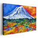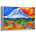 Introducing 'Abstract Elevation Symphony,' a mesmerizing canvas art print that captures the essence of a majestic snow-capped mountain reminiscent of the grandeur of Mount Fuji, set against a backdrop of a stunningly colorful sky. This artwork is a harmonious blend of tranquility and vibrancy, inviting viewers into a scene that radiates both peace and energy.