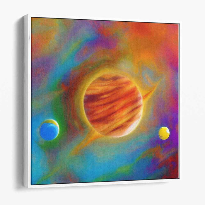 Decorate your walls with this high quality Abstract Planets art print on canvas. Whether you hang it in your living room, bedroom or office, this artwork is sure to add a touch of beauty and color to your room.