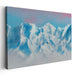 The focal point of this masterpiece is the majestic snow-covered peaks, glistening in shades of blue and white that play with light and shadow, offering a sense of depth and grandeur. The sky above transitions from a gentle blue near the horizon to hues of pink and purple, hinting at the delicate dance of dawn or dusk, infusing the landscape with a touch of warmth against the cool, pristine scenery. The artist masterfully blends realism and impressionism, meticulously detailing the texture of the snow and the ruggedness of the mountains, while using sweeping, smooth strokes to depict the vast, tranquil sky.