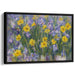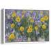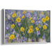 Introducing "Amethyst Petal Dance," a mesmerizing canvas art print that encapsulates the vibrant beauty of a spring garden in full bloom. This exquisite artwork transports viewers to a serene oasis of joy and serenity, where yellow and purple flowers dance gracefully in an unseen breeze, likely daisies and irises, painting a picture of nature's purest delights.