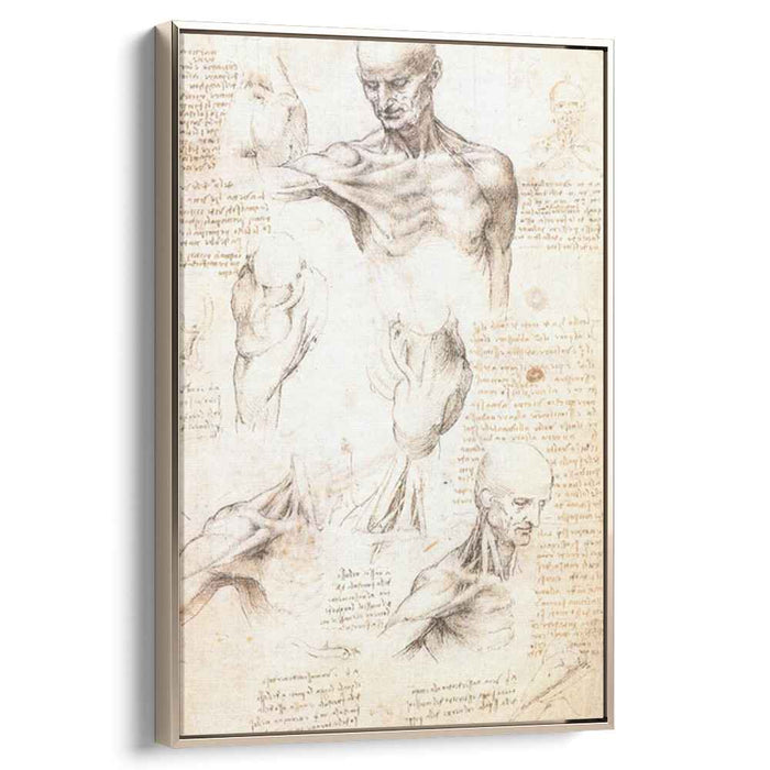 "Anatomical Studies of a Male Shoulder" stands as a testament to da Vinci's groundbreaking contributions to anatomical knowledge. It paved the way for his iconic works, such as the "Vitruvian Man" and the "Mona Lisa," where the human form is rendered with both scientific accuracy and aesthetic beauty.