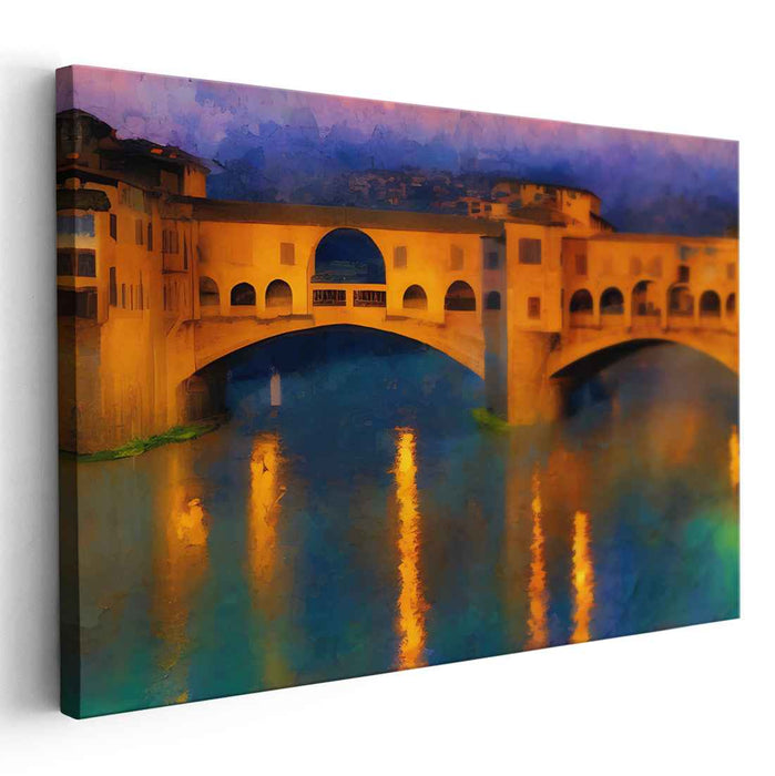 Add a touch of sophistication to your decor with "Ancient Arches Over Water: Ponte Vecchio in Florence." Let this canvas art print envelop your space in the allure of European twilight, creating an ambiance of artistic refinement and tranquility.