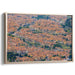 Introducing "Ancient Echoes Above," a mesmerizing canvas art piece that offers a bird's eye view of a bustling historical town, capturing the harmonious blend of terracotta rooftops and verdant greenery that envelops the area. This captivating artwork immerses viewers in the urban landscape, showcasing a palette dominated by warm terracotta tones, accentuated by hints of green from the surrounding trees and neutral hues of the buildings.
