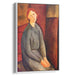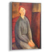 In "Annie Bjarne," Modigliani showcases his signature style, characterized by elongated figures and hauntingly expressive eyes. The subject's graceful posture and serene gaze draw the viewer into her inner world, creating a sense of intimacy and contemplation.
