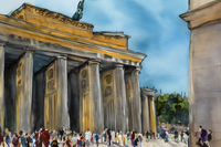The artwork exudes a sense of majesty and historical reverence, making it a perfect fit for spaces seeking to evoke a grand and lively atmosphere. Whether displayed in a living room or study, this piece serves as a striking conversation starter, inviting viewers to delve into the rich cultural heritage embodied by the Brandenburg Gate.