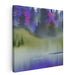 Introducing 'Aqueous Dreams,' a mesmerizing watercolor canvas art that transports you to the peaceful shores of a secluded lake, enveloped in a veil of tranquility and mystery. This captivating artwork harmoniously blends soft purples, deep greens, and subtle blues, creating a visual symphony that soothes the soul.