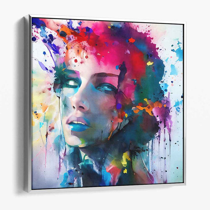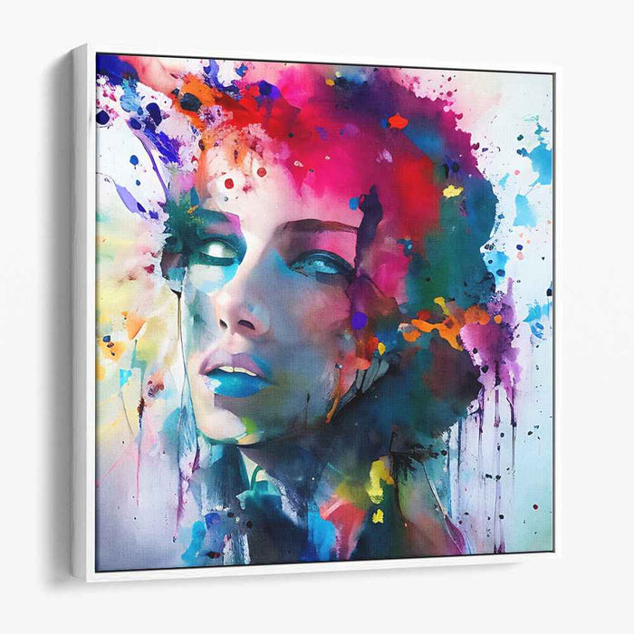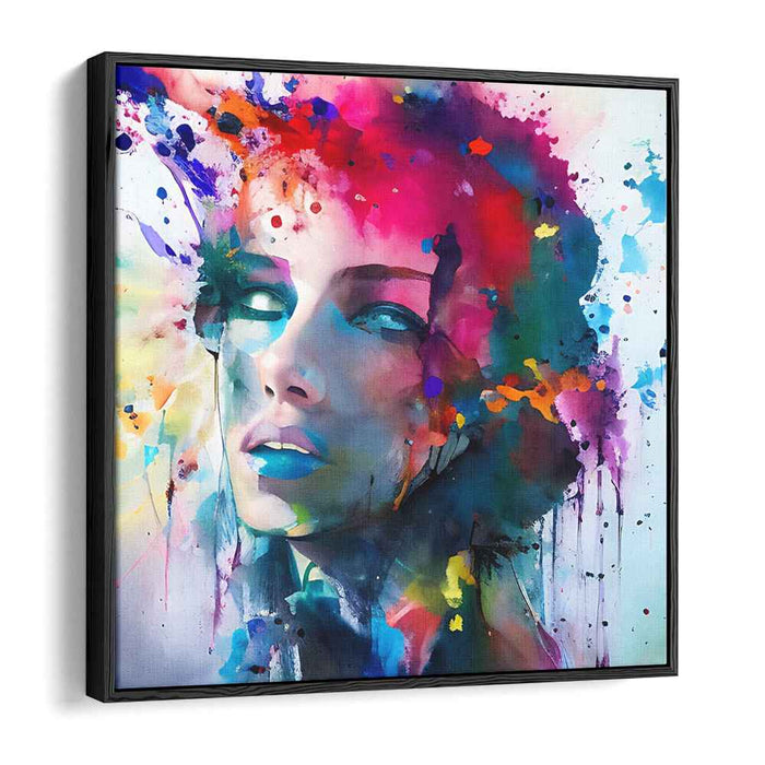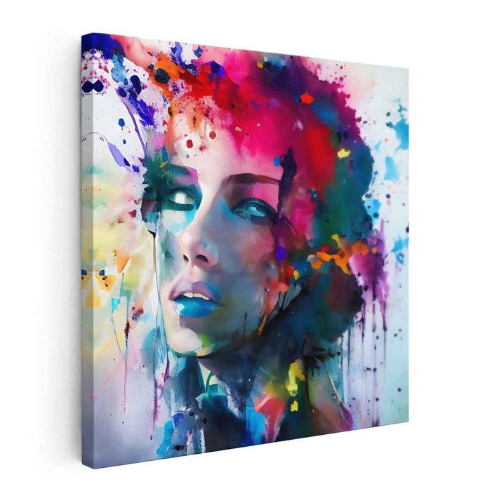 Introducing 'Aqueous Identity: Vivid Watercolor Portrait,' a mesmerizing canvas art print that captures the essence of human emotions through a burst of vibrant colors. This striking portrait of a woman immerses viewers in a whirlwind of feelings, skillfully depicted through a kaleidoscope of hues.