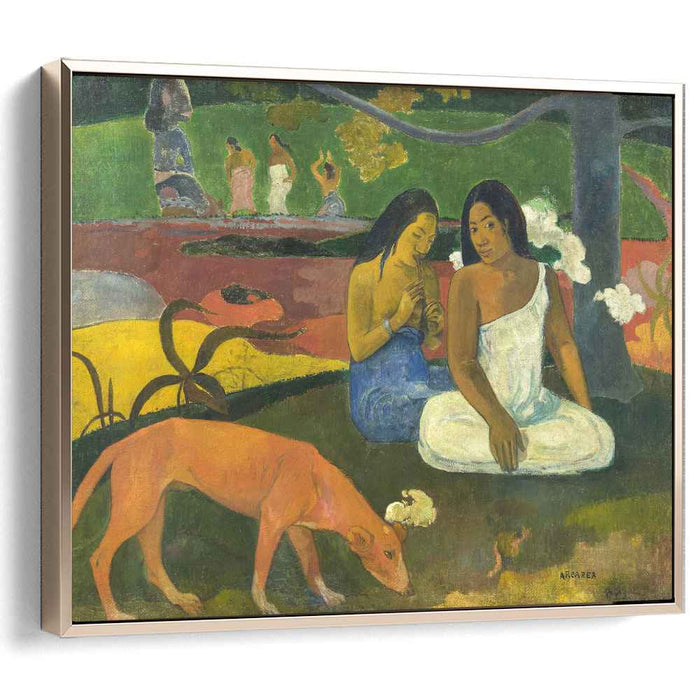 Step into the captivating realm of Paul Gauguin's "Arearea I" (1892), now flawlessly recreated on high-quality canvas. This mesmerizing masterpiece transports you to the lush landscapes of Tahiti, revealing the vibrant culture and enchanting beauty that inspired Gauguin's artistic vision.