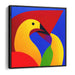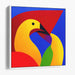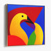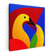 Introducing "Avian Angles," a mesmerizing canvas art print that encapsulates the spirit of abstract art, portraying a bird with a modern twist, exuding energy and joy through its bold and vibrant colors. This artwork features a captivating blend of primary colors, with a dominant yellow hue embodying the bird's body, complemented by a striking red for the beak and a deep blue background that creates a stunning contrast, ensuring the bird comes to life vividly on the canvas. The addition of secondary colors like green and purple adds depth and intricacy, harmonizing the composition into a visually captivating piece.