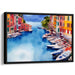Azure Canals: Vivid Watercolor Portofino Escape Canvas Art Print