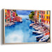 Introducing 'Azure Canals: Vivid Watercolor Portofino Escape,' a mesmerizing canvas art print that transports viewers to a charming Mediterranean village nestled by the sea. This artwork encapsulates the allure of coastal Italy with its rich, vibrant colors and an ethereal watercolor technique that enchants the beholder.