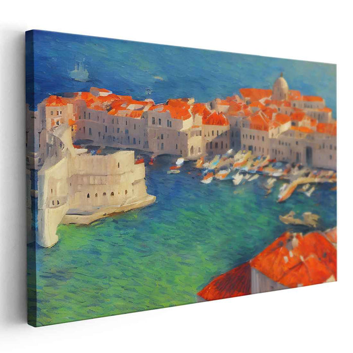 Introducing 'Azure Coastline: Vibrant Seascape of Dubrovnik,' a mesmerizing canvas art print that transports viewers to the enchanting coastal city of Dubrovnik, where historic charm meets the shimmering azure waters of the Adriatic Sea. This captivating artwork encapsulates the essence of this iconic town, celebrated for its unique architecture and maritime legacy.