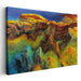 The artist's bold use of fiery oranges and yellows, contrasted with cooler blues and greens, infuses the canvas with a sense of energy and depth. These striking hues cascade across the artwork, creating a mesmerizing interplay that captivates the viewer's gaze and sparks the imagination.