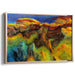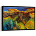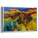 Introducing 'Blaze Frost Symphony: Fiery Hues and Cool Contrasts,' a mesmerizing canvas art print that transports viewers into a realm where reality and fantasy intertwine seamlessly. This captivating artwork features a vibrant palette dominated by bold oranges and yellows, intermingled with deep reds, earthy browns, blues, and greens, creating a dynamic visual symphony that suggests movement and depth.
