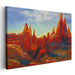 Step into the vibrant world of 'Blaze of Crimson Horizons: A Luminous Landscape of Passion,' a captivating canvas art piece that immerses you in the untamed beauty of a dramatic rocky terrain beneath a vast, expansive sky. This artwork, dominated by majestic peaks that soar boldly into the heavens, is a testament to the power of color and movement.