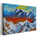 Immerse yourself in the breathtaking beauty of 'Blaze on Icy Peaks: Fiery Skies and Snow-Capped Mountains', a stunning canvas art print that captures the raw, untamed splendor of nature. This artwork features a dramatic landscape dominated by towering snow-capped mountains under a vibrant, tumultuous sky. The foreground showcases rugged, white peaks, rendered with exquisite detail and a palpable sense of texture, suggesting the crisp, cold air of high altitudes. Above these icy giants, the sky transitions from a serene blue to a fiery blend of orange and red, evoking a sense of awe and the unpredictable beauty of the natural world. The use of bold, impressionistic brush strokes and a vivid color palette enhances the dynamic contrast between the fiery sky and the cool, tranquil mountains. This piece is a celebration of nature's dualities and the sublime beauty of mountainous landscapes, making it a perfect statement piece for any space seeking a touch of nature's grandeur.
