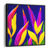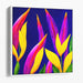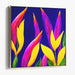 The artwork bursts to life with electric yellows, intense magentas, regal purples, and fiery oranges, creating a symphony of colors that dazzle the eye and infuse the space with energy and vitality. The deliberate choice of bold, saturated colors enhances the visual impact, drawing the viewer into a world of vivid beauty and botanical splendor.