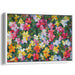 The canvas bursts with a kaleidoscope of colors, where the vibrant flowers take center stage against a backdrop of lush, verdant greens. Reds, pinks, yellows, and whites dance harmoniously, each petal meticulously painted to capture the intricate textures and nuanced shades, bringing the garden to life with meticulous detail.