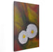The meticulous detailing of the flowers, with their soft contours and gentle shading, contrasts beautifully with the vibrant background. The yellow centers of the blooms provide a warm and captivating focal point, drawing the viewer into the heart of the composition. The background, a whirlwind of deep reds, oranges, and greens, weaves a rich tapestry that enhances the fragile elegance of the flowers, creating an abstract yet ethereal landscape that exudes warmth and tranquility.