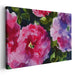 Introducing 'Blossoms in Whispering Rain,' a mesmerizing watercolor floral canvas art print that captures the essence of blooming flowers in a symphony of color and form. This exquisite piece showcases a vibrant array of blossoms, predominantly in deep pink and soft lavender hues, harmoniously juxtaposed against lush green foliage.
