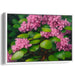 Introducing "Botanical Blossom Illusion," a mesmerizing piece of realistic floral canvas art that encapsulates the enchanting beauty of nature with unparalleled realism. This exquisite artwork focuses on a lush cluster of pink flowering plants, reminiscent of delicate lilacs, intricately intertwined with broad, vibrant green leaves, meticulously captured by the artist.