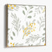 The addition of the vibrant yellow berries against the muted backdrop of the leaves infuses the artwork with a burst of color, offering a delightful visual contrast that enhances the overall aesthetic appeal. The artist's minimalist approach is evident in the clean lines and clear forms that accentuate the simple yet refined beauty of the botanical elements, reminiscent of the style of renowned botanical artist Pierre-Joseph Redouté but with a contemporary twist.