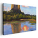 Introducing 'Calm Waters, Solitude Heights,' a mesmerizing landscape canvas art that transports viewers to a tranquil lake at sunset, where a majestic rock formation casts a perfect reflection on the calm waters, surrounded by the warm embrace of a twilight sky. This captivating artwork captures the essence of serene natural beauty, inviting contemplation and awe.