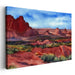 Introducing 'Canyon Rouge Rhapsody: Watercolor Red Rock Canyon,' a mesmerizing canvas art piece that transports viewers into the heart of a desert landscape, capturing the essence of grandeur and tranquility. The artwork focuses on the majestic red rock formations that dominate the foreground, their rich crimson tones contrasting vividly against the vast, expansive sky.