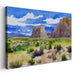 Introducing 'Canyon Vista Mirage,' a mesmerizing watercolor landscape canvas art that transports viewers to the awe-inspiring beauty of a desert plateau, reminiscent of the vast landscapes of the American Southwest. This captivating artwork captures the grandeur of towering mesas and rugged cliffs against a backdrop of an expansive, vibrant blue sky.