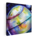 The centerpiece of the composition is the resplendent planet, awash in luminous, swirling hues that dance across the canvas in a mesmerizing display. Soft pastel tones of yellow, blue, pink, and green harmonize effortlessly, imbuing the scene with a sense of ethereal serenity and awe. Complementing these gentle shades are deeper purples and blacks that punctuate the cosmic expanse, providing a striking contrast and depth to the artwork.