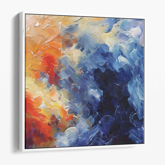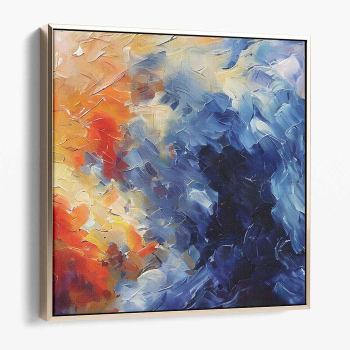 Immerse yourself in the vibrant world of abstract expressionism with a museum-quality canvas print of "Chaos Tamed by Fire." Let the interplay of blues and oranges, the texture of impasto strokes, and the legacy of artistic legends enrich your surroundings with energy, emotion, and a touch of ethereal beauty.