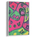 Introducing "Chromatic Dance Abstraction," an electrifying abstract expressionist magenta and green canvas art piece that commands attention with its explosive blend of colors and dynamic composition. This artwork captivates the viewer with its bold use of a vibrant magenta backdrop, adorned with a symphony of shapes and patterns in contrasting hues of green, yellow, and dark purple, creating a whirlwind of energy and movement.