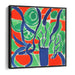 This modern abstract artwork resonates with the styles of renowned artists like Henri Matisse and Wassily Kandinsky, focusing on the emotional impact of color and form rather than realistic representation. The bold use of unmodulated colors and dynamic lines reflects influences from the Fauvism and Abstract Expressionism movements, showcasing a balance between spontaneity and controlled composition.