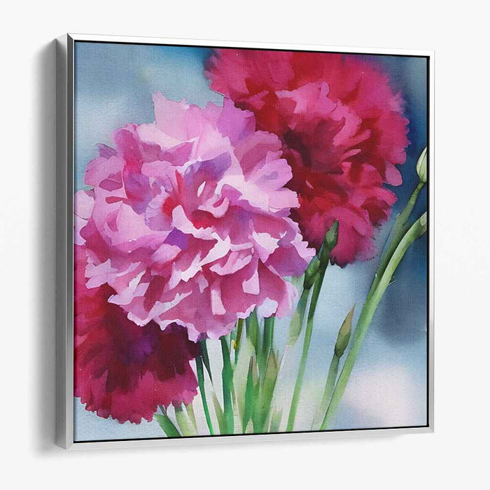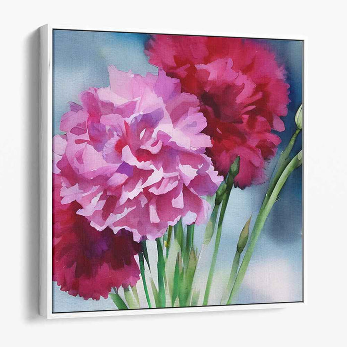 Enhance your decor with this exquisite watercolor masterpiece that celebrates the joy and serenity of blooming carnations. Let "Chromatic Petal Dream: Watercolor Carnations in Bloom" grace your walls and infuse your space with a touch of natural elegance and artistic refinement.