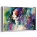 Surrounding the woman is a vibrant explosion of colors, a swirling vortex blending hues of blue, green, purple, and red in a mesmerizing dance of light and shade. These colors cascade and intermingle, creating a dynamic backdrop that beautifully contrasts with the gentle depiction of the figure, evoking a sense of harmony and balance.