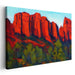 Introducing 'Chromatic Terrain Illusion,' a vivid landscape canvas art print that captures the awe-inspiring beauty of majestic red rock formations basking in the warm glow of sunlight, reminiscent of the iconic landscapes of Sedona, Arizona. This captivating artwork immerses viewers in a scene dominated by towering red cliffs, their rugged textures brought to life with bold, expressive brushstrokes.