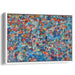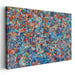 Dominated by a bold interplay of primary blues and reds, this piece pulsates with the vibrancy of secondary hues like orange, yellow, and green, infusing depth and intricacy into its overall palette. The composition's dynamic patterns and vivid colors evoke a sense of liveliness and complexity, inviting viewers to immerse themselves in its artistic symphony.