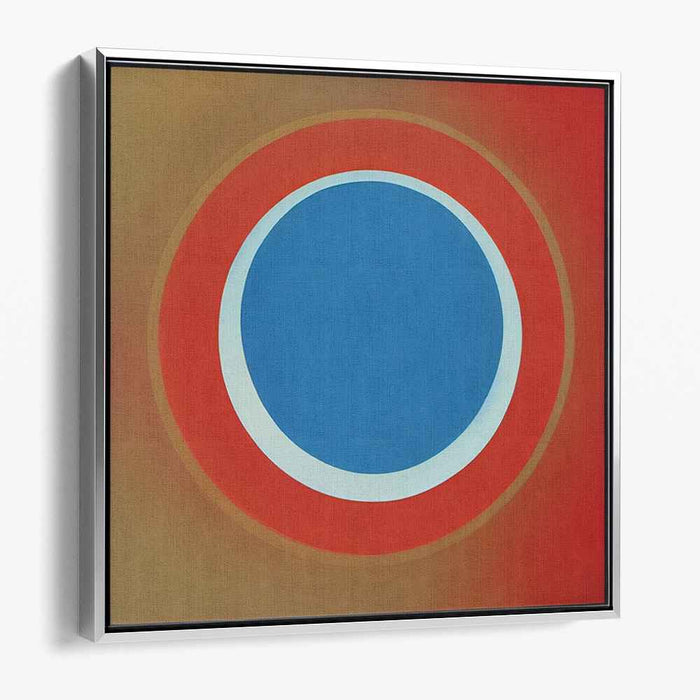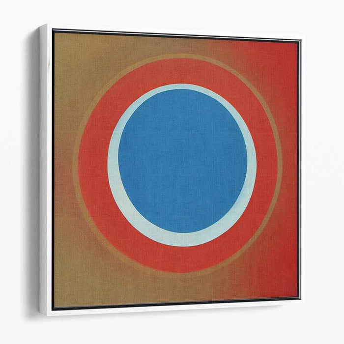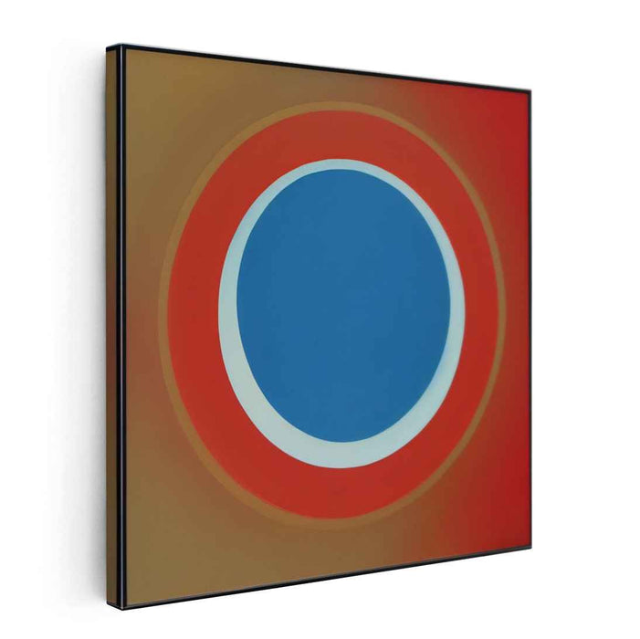 Introducing 'Colorful Circles Dance Gracefully: Bold Blue and Radiant Red Circle Art Print,' a mesmerizing abstract canvas art that captivates viewers with its interplay of geometric shapes and vibrant colors. This artwork features a central cerulean blue circle encircled by a crisp white ring, surrounded by a vibrant red band that transitions into a muted earthy brown, creating a dynamic and depth-enhancing gradient.