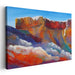 Introducing "Colorful Horizon Masterpiece," a vibrant landscape canvas art print that transports viewers to the awe-inspiring grandeur of a majestic canyon under a clear, expansive sky. This captivating artwork commands attention with its rich palette dominated by hues of red, orange, and yellow, as the canyon walls soar majestically against the vivid blue sky.