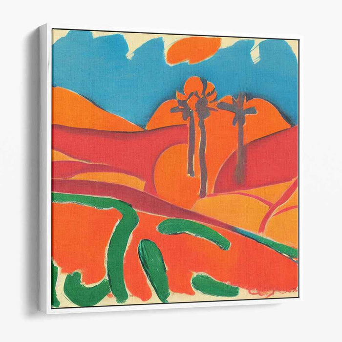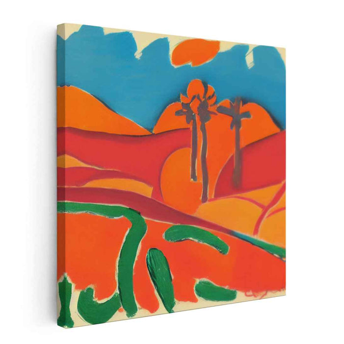 Step into the mesmerizing world of 'Colorful Wanderlust Expedition: A Vivid Abstract Interpretation,' an electrifying canvas art piece that redefines the traditional desert landscape with a burst of vibrant colors and surreal elements. This artwork encapsulates the spirit of a desert setting, transformed into a kaleidoscope of emotions through daring and expressive color schemes.
