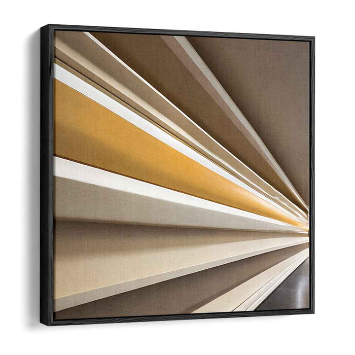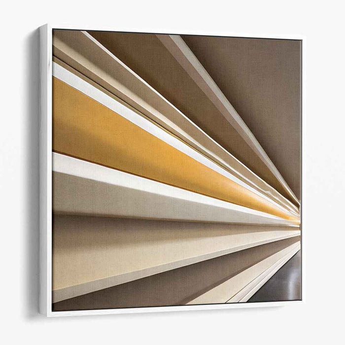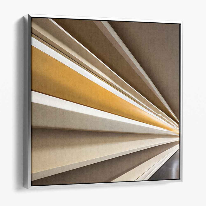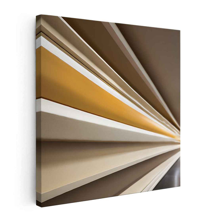 Introducing "Converging Horizons," a mesmerizing canvas art print that captivates viewers with its play of lines and colors, creating a stunning illusion of depth and movement. The composition showcases a series of diagonal bands converging towards a vanishing point, skillfully enhancing the sense of perspective and drawing the observer into a hypnotic visual journey.