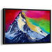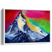 Introducing 'Crests Of Majesty,' a captivating and vibrant mountain landscape canvas art that transports viewers to a realm where the grandeur of nature meets the artist's fantastical vision. This dramatic piece showcases a majestic mountain peak, reminiscent of the iconic Matterhorn, depicted with bold and vivid colors that create a striking contrast between the icy blues and whites of the mountain and the fiery reds, oranges, and greens of the sky.