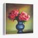 Crimson Blooms Echo: Red Peonies in Blue Vase Still Life Canvas Art Print