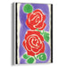 Crimson Blooms in Indigo Dream: Modernist Red Roses on Purple Canvas Art Print