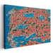 Introducing 'Crimson Heights Cityscape Dance,' a mesmerizing canvas art piece that transports you to a vibrant coastal town perched on a rugged peninsula, embraced by the azure embrace of the sea. This artwork captures the essence of a bustling coastal community with its dense clusters of charming red-roofed houses set against the deep blue waters and lush greenery.