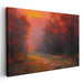 Step into the enchanting embrace of autumn with "Crimson Woods Mirage," a mesmerizing landscape canvas art that transports you to a serene woodland bathed in the fiery hues of a setting sun. This captivating artwork beckons you to explore a tranquil forest scene, where a winding path meanders through a tapestry of rich, vibrant foliage.