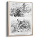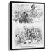 Don Quixote's iconic silhouette, perched atop his trusty steed, embodies both the grandeur and the fragility of human dreams. His lance, held aloft, symbolizes his unyielding belief in his noble cause, while his scrawny horse, Rosinante, represents the harsh realities he encounters. The engraving captures the essence of Quixote's unwavering spirit in the face of adversity.